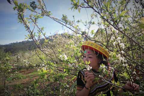 Dưới những tán hoa mận trắng tinh khôi, du khách có thể thoải mái thả hồn mình vào không gian đầy thơ mộng