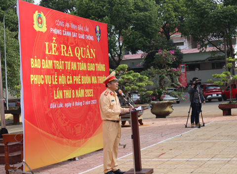 Sáng 6/3, Phòng CSGT, Công an tỉnh tổ chức Lễ ra quân bảo đảm trật tự an toàn giao thông (ATGT) phục vụ Lễ hội Cà phê Buôn Ma Thuột lần thứ 8 năm 2023.