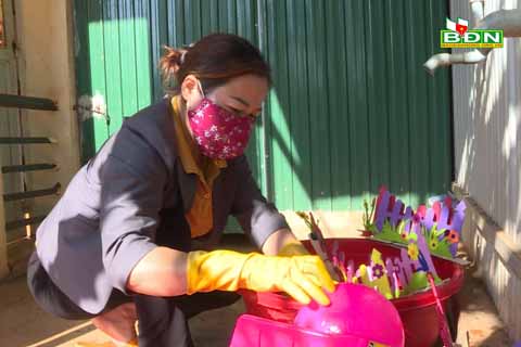 Trường Mầm non Hoa Hồng chủ động vệ sinh đồ chơi cho học sinh