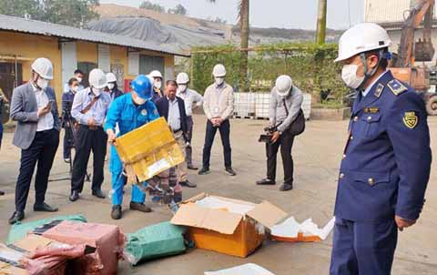 Cục Quản lý thị trường Hà Nội tiêu hủy khoảng 15 tấn hàng lậu, hàng giả, hàng không rõ nguồn gốc..., trị giá gần 8,5 tỷ đồng.