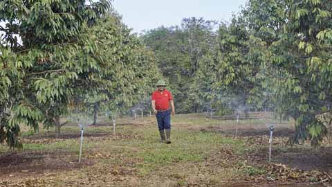 Nông dân ứng dụng công nghệ tưới tự động trong chăm sóc sầu riêng