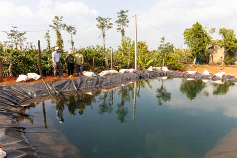 Thời điểm này, bà Hoàng Thị Xuân ở thôn 5, xã Dliê Yang (huyện Ea H’leo) yên tâm hơn phần nào khi vừa hoàn thành hồ bạt chứa nước rộng 230 m2 của gia đình để phục vụ việc tưới cho 2,7 ha cà phê xen sầu riêng. Những năm trước đây, chưa chủ động được nguồn nước, gia đình bà thường xuyên phải thuê nước tưới của hàng xóm nên hiệu không cao. Năm nay, gia đình bà được hỗ trợ vay vốn phục vụ sản xuất từ Ngân hàng Chính sách xã hội, bà đã quyết tâm làm hồ bạt, chủ động trữ nước tưới qua mùa khô.