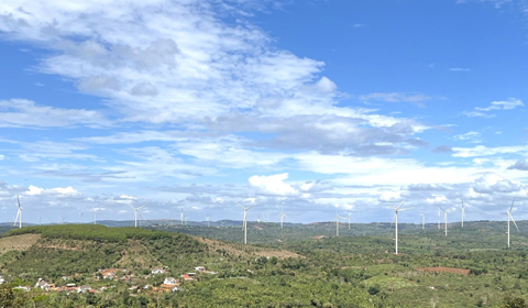 Cụm nhà máy điện gió trên địa bàn huyện Krông Búk do nhà đầu tư đến từ Singapore xây dựng