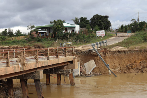 Mố cầu Thống Nhất đoạn qua xã Ea Ô, huyện Ea Kar bị sạt lở, gây chia cắt giao thông vào cuối năm 2021