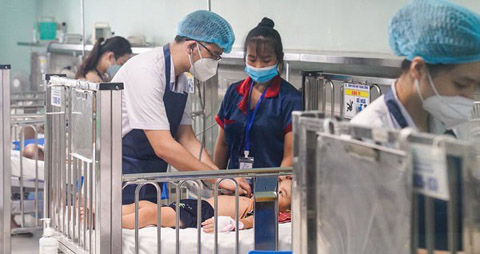Chăm sóc trẻ nhiễm virus hợp bào hô hấp tại Bệnh viện Nhi trung ương. Ảnh: TL.