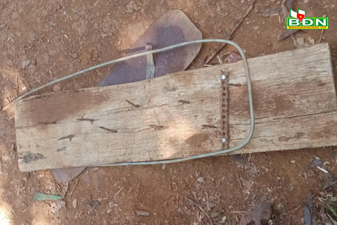Các bẫy này được mài sắc nhọn, chôn ở các tuyến đường tuần tra. Khi lực lượng QLBVR qua lại, người và phương tiện rất dễ vấp phải các bẫy đinh này.