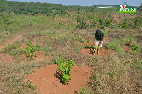 Ông Trần Đoàn, thôn Đắk Thủy, xã Đắk Lao (Đắk Mil) cho biết: Năm nay, gia đình ông xuống giống 7 sào cà phê dây. Giá cây giống ở mức 15.000 đồng/cây, đắt hơn mọi năm từ 1.000- 2.000 đồng/cây.