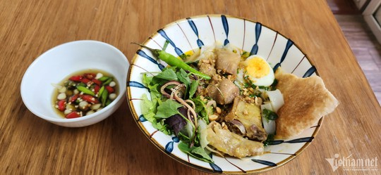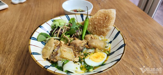 Không giống với những tô mì Quảng khác, mì sẽ được để riêng nguyên liệu trên một mẹt, thực khách sẽ tự trộn nguyên liệu theo sở thích.