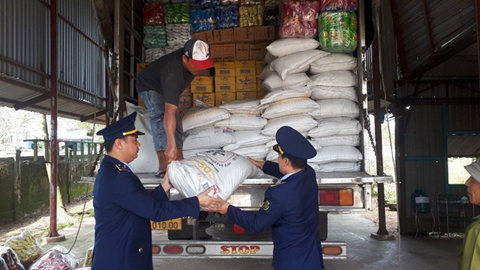 Cán bộ quản lý thị trường kiểm tra hàng hóa. Ảnh:Tổng cục QLTT.