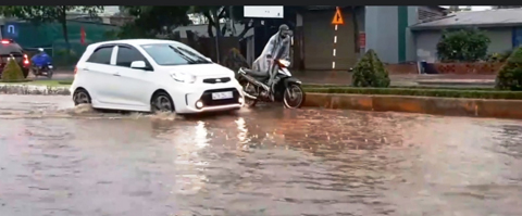 Tuyến đường Nguyễn Tất Thành (TP. Buôn Ma Thuột) ngập nước sau một cơn mưa lớn