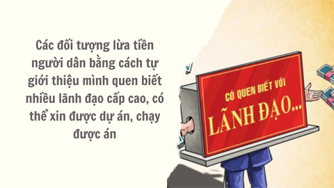 Bằng thủ đoạn giới thiệu bản thân quen biết với lãnh đạo cấp cao, có mối quan hệ rộng, các đối tượng đã lừa đảo nhiều người với số tiền rất lớn.