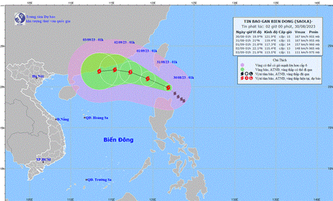 Theo Trung tâm Dự báo Khí tượng Thủy văn Quốc gia, hồi 1 giờ ngày 30/8, vị trí tâm bão Saola ở vào khoảng 19,9 độ Vĩ Bắc, 121,9 độ Kinh Đông, trên vùng biển phía Bắc đảo Luzon (Philippines). Sức gió mạnh nhất vùng gần tâm bão mạnh cấp 15 (167-183km/h), giật trên cấp 17, di chuyển theo hướng Tây Bắc, tốc độ 10-15km/h.