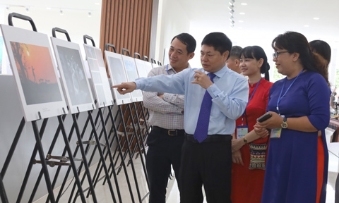 Phó Bí thư Thường trực Tỉnh ủy Phạm Minh Tấn cùng các đại biểu tham quan triển lãm.