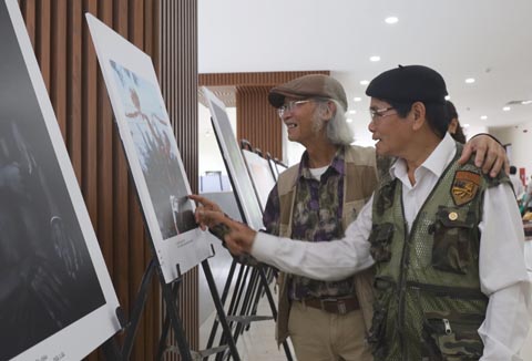 Tác giả Đinh Văn Nam (Hà Nội) bên bộ ảnh “Quy trình chế biến rượu cần của người Êđê” đoạt giải Nhì tại Cuộc thi