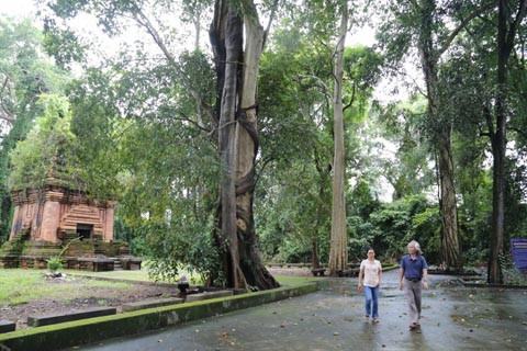 ... địa mạo và cảnh quan môi trường chung quanh theo chiều hướng tiêu cực như hiện nay sẽ là thách thức đè nặng lên di tích này. Anh muốn vào thăm cổ tháp thì tranh thủ đi, chứ trời mưa càng lúc càng lớn sợ không vào được vì đường sá vào đó đã nát quá rồi.
