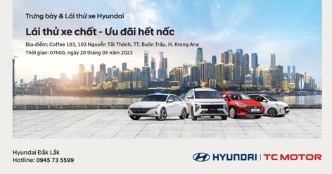 Cuối tuần này Hyundai Đắk Lắk chọn thị trấn Buôn Trấp - Krong Ana làm địa điểm để khách hàng lái thử trải nghiệm xe thương hiệu Hyundai và cơ hội nhận ưu đãi khi tham gia đăng ký lái thử.