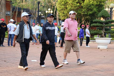 Người cao tuổi nên thường xuyên vận động, tập các bài thể dục như đi bộ, dưỡng sinh để nâng cao sức khỏe. Ảnh: Đình Thi