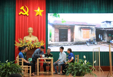 Bộ đội biên phòng tuyên truyền phòng chống mua bán người thông qua hình thức sân khấu hóa. (Trong ảnh: Bộ đội biên phòng thực hiện tiểu phẩm "Việc nhẹ, lương cao").