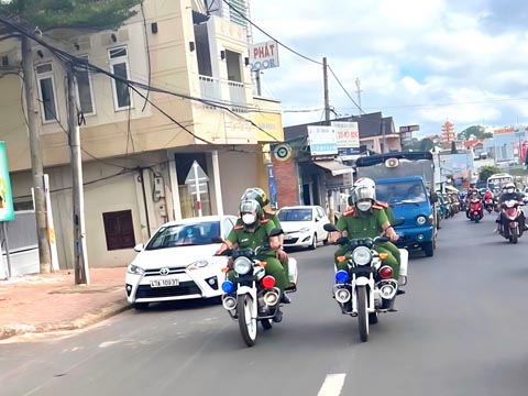 Lực lượng công an xã tiến hành tuần tra kiểm soát trên các tuyến đường tại địa bàn ký kết