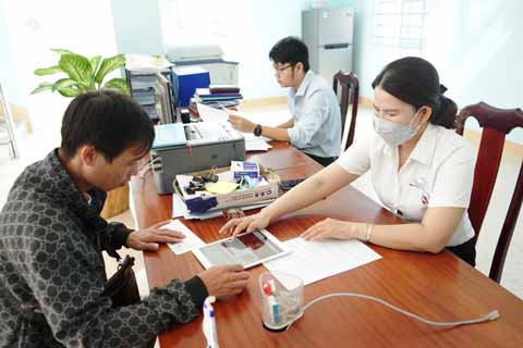 Người dân xã Hòa Phú thực hiện thủ tục hành chính trên hệ thống dịch vụ công trực tuyến. Ảnh: T.Hồng