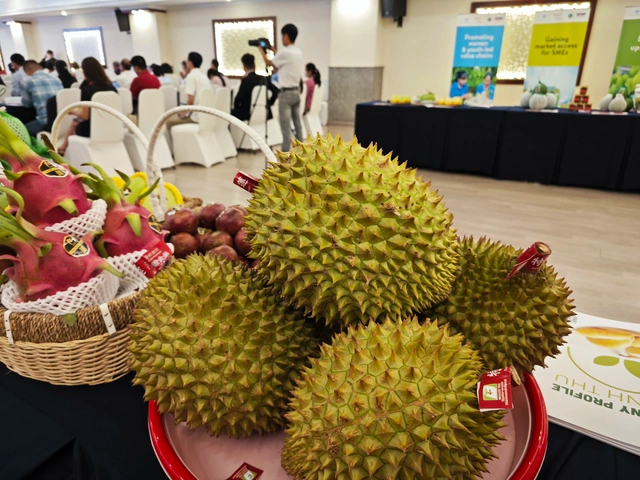 Sầu riêng chuẩn xuất khẩu Trung Quốc được trưng bày tại một hội nghị tại TP HCM