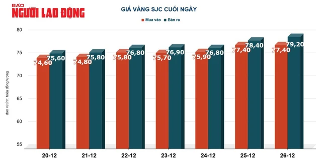 Trước đó, tại Việt Nam, thị trường vàng biến động hết sức khó lường. Giá vàng SJC trong ngày 26-12 có lúc tăng lên rồi giảm xuống hàng triệu đồng/lượng. Đến cuối ngày, vàng miếng SJC bất ngờ đảo chiều từ 80,4 triệu đồng/lượng xuống còn 79,2 triệu đồng/lượng.