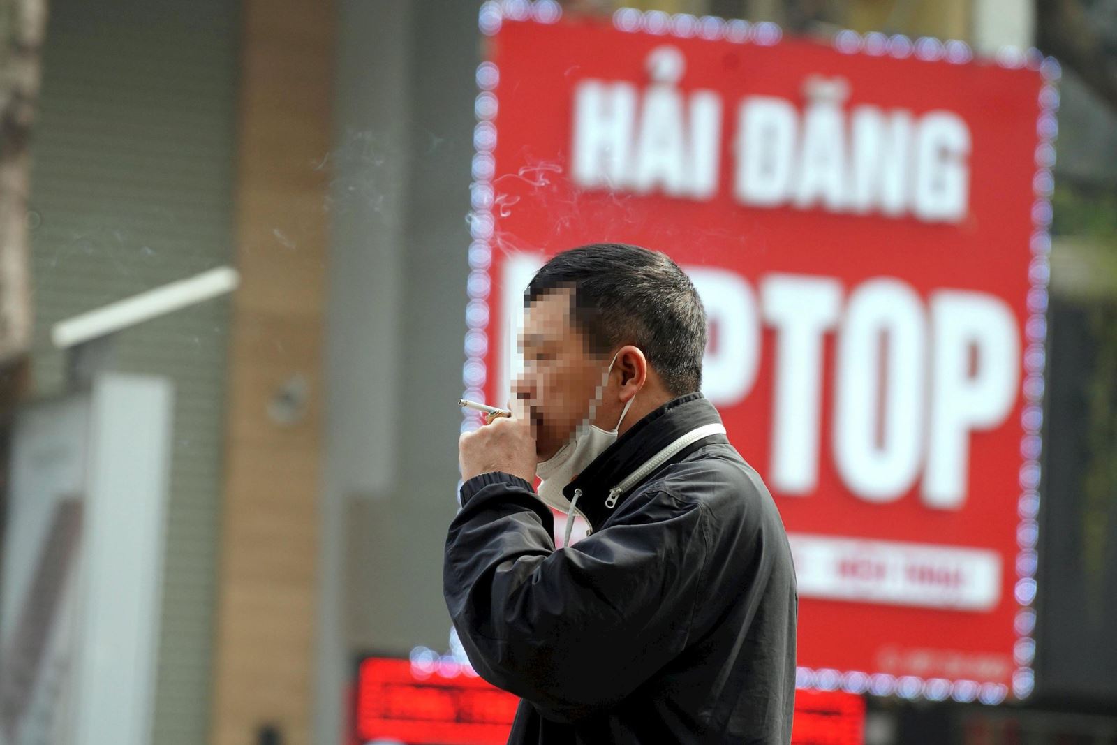 Người dân vẫn vô tư hút và xả khói thuốc nơi công cộng. Ảnh: Hà An.
