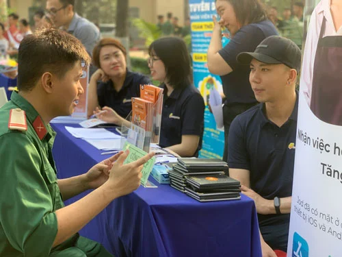 Quân nhân chuẩn bị xuất ngũ tìm việc tại một ngày hội việc làm, tổ chức tháng 12-2023 tại TP HCM