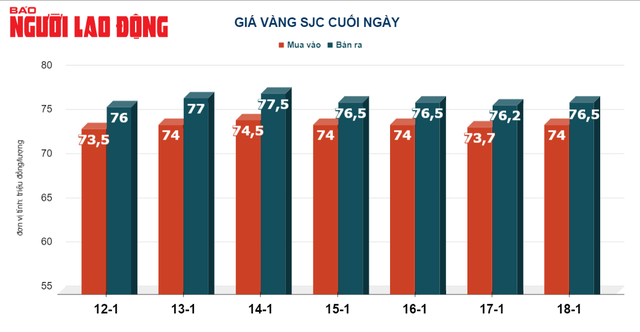 Tại Việt Nam, do sức mua tăng nên giá vàng SJC trong ngày 17-1 tăng 500.000 đồng/lượng, chốt cuối ngày tại 76,5 triệu đồng/lượng.