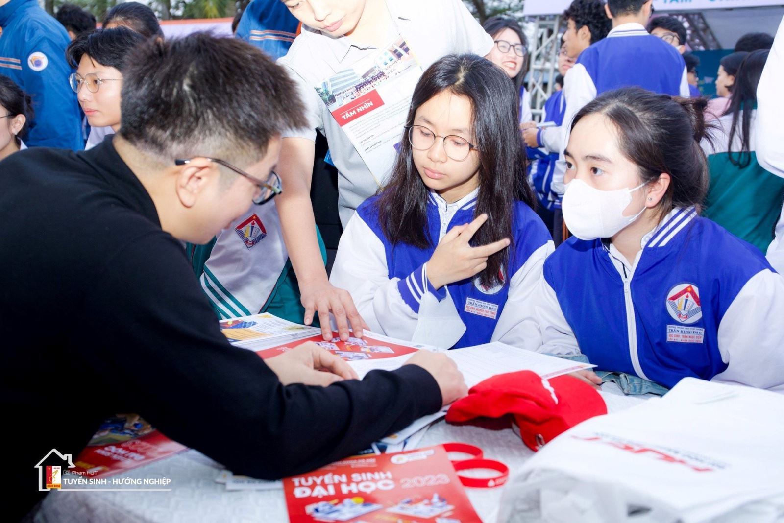Các em học sinh tham gia chương trình tuyển sinh - hướng nghiệp tại ĐH Bách khoa Hà Nội. Ảnh: HUST.