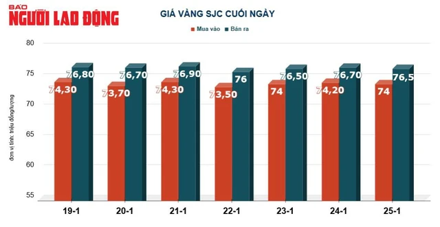 Tại Việt Nam, trước bối cảnh Chính phủ đang tìm cách kém giảm mức độ chênh lệch giá vàng trong và ngoài nước, giá vàng SJC trong 2 ngày gần đây giao dịch rất yếu. Riêng ngày 25-1, vàng miếng SJC gần như bất động tại 76,5 triệu đồng/lượng