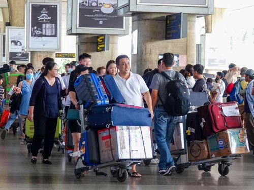 Hành khách nhập cảnh ở ga quốc tế sân bay Tân Sơn Nhất (TP HCM) .Ảnh: HOÀNG TRIỀU