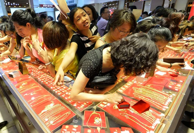 Người dân đi mua trang sức vàng tại một cửa tiệm ở tỉnh Sơn Tây - Trung Quốc Ảnh: REUTERS
