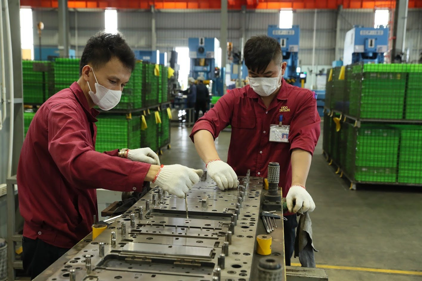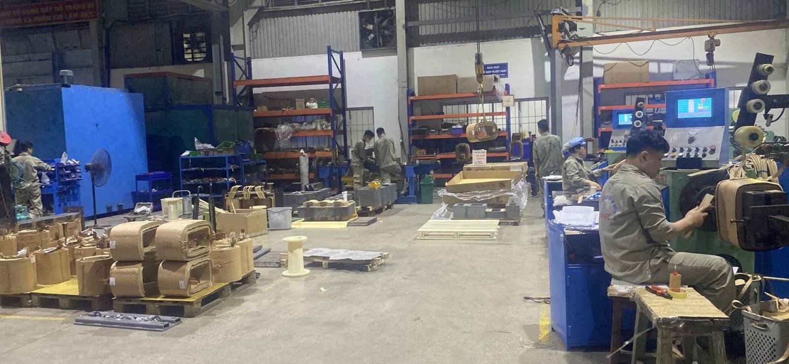 Công nhân Công ty cổ phần Chế tạo Thiết bị điện Việt Nam (HAVEC). Ảnh: Phạm Diệp.