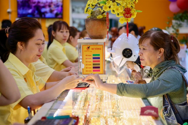 Đáng chú ý, theo ghi nhận của phóng viên, ngày 8-3, nhu cầu mua vàng của người dân tiếp tục tăng, tập trung vào vàng nhẫn. Tại trụ sở chính Công ty TNHH Vàng bạc Đá quý Sài Gòn (SJC, quận 3, TP HCM), dù không diễn ra tình trạng đổ xô mua vàng song khách ra vào cũng khá nhộn nhịp, trong đó đa phần hỏi mua vàng nhẫn trơn và bán vàng miếng SJC.