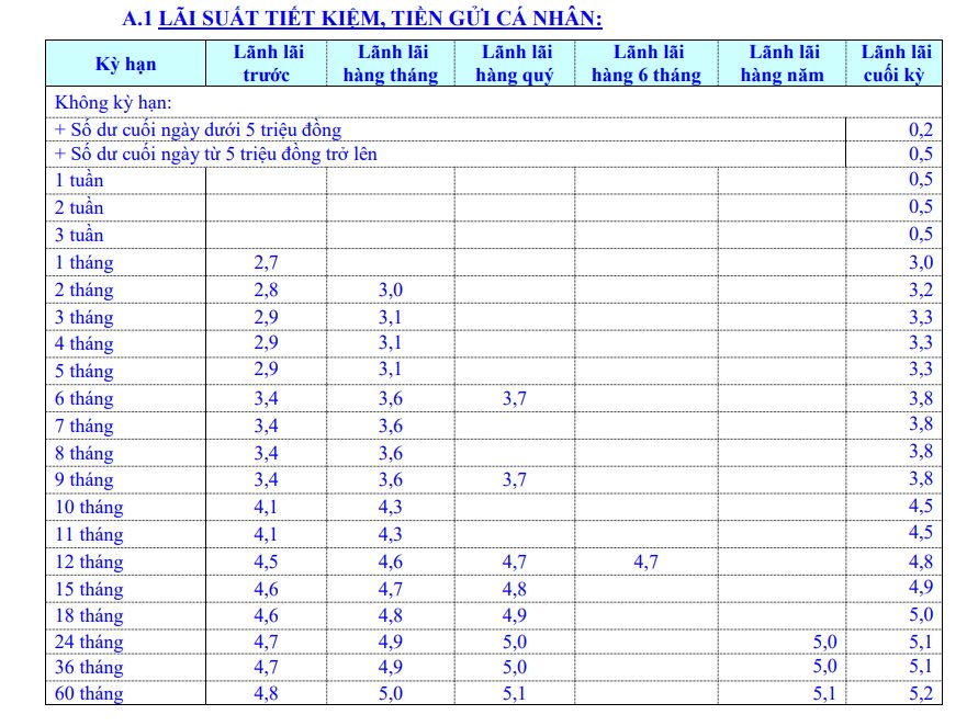Cùng ngày, Ngân hàng Thương mại TNHH MTV Xây dựng Việt Nam (CBBank) cũng thông báo giảm lãi suất huy động với mức giảm đáng kể 0,5%/năm tại tất cả các kỳ hạn tiền gửi.