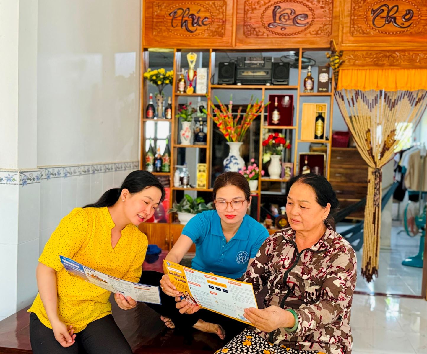 Tuyên truyền chính sách bảo hiểm y tế tại Thị trấn Kinh Cùng, Phụng Hiệp, Hậu Giang. Ảnh: Nguyễn Tú.