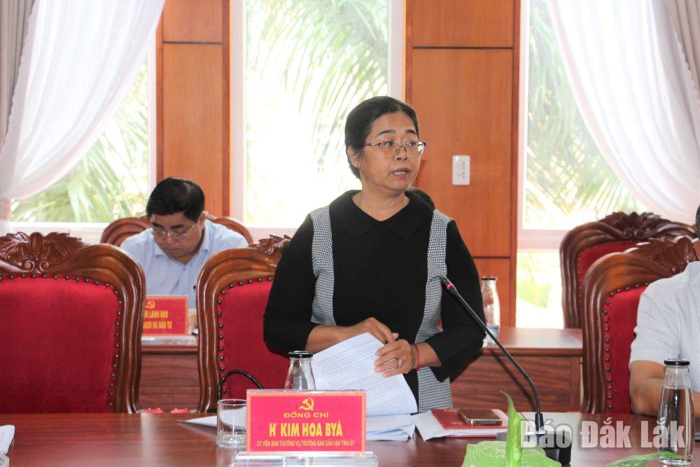 Trưởng Ban Dân vận Tỉnh ủy H'Kim Hoa Byă phát biểu tại hội nghị
