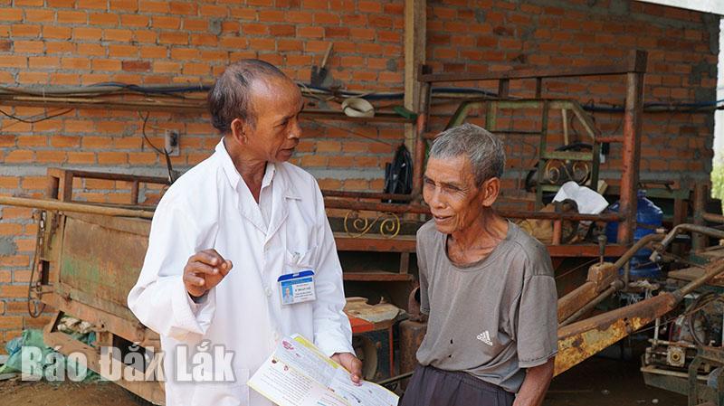 Cán bộ Trạm Y tế xã Ea Hồ (bên trái) tuyên truyền các biện pháp phòng, chống dịch bệnh tại nhà dân. Ảnh: Quang Nhật