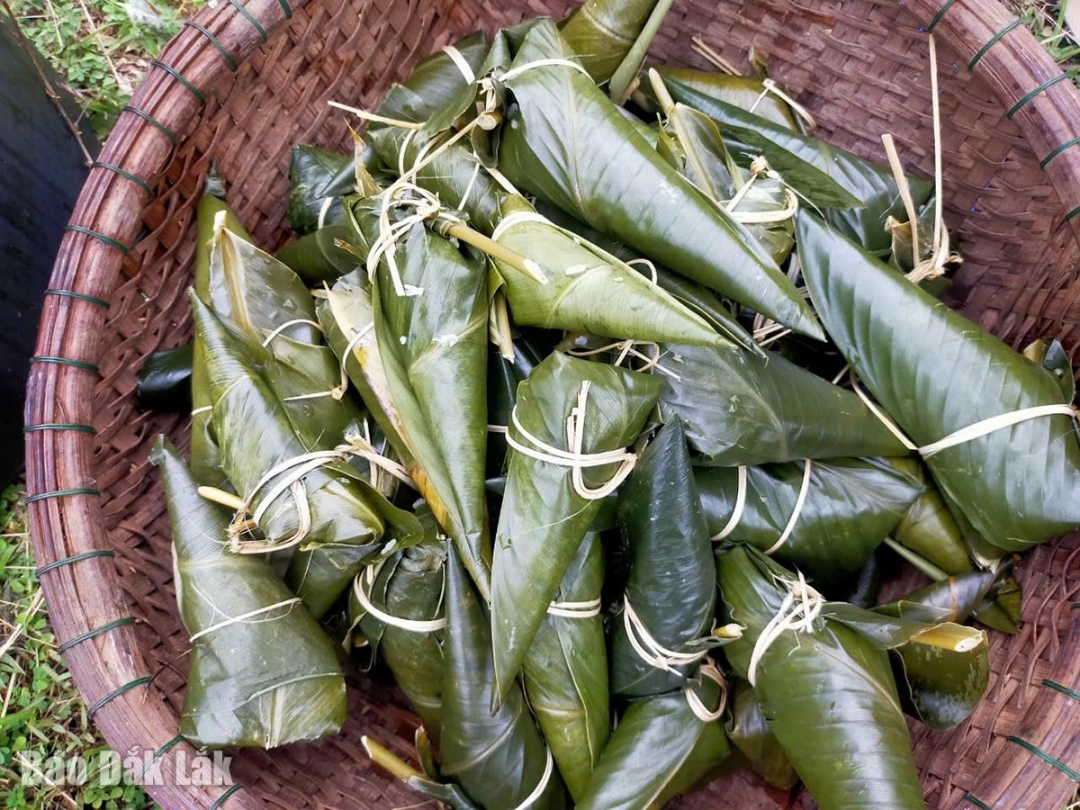 Bà Hồ Thị Mỹ Nương (dân tộc Ca Dong ở thôn Hạ Sơn, xã Phước Gia, huyện Hiệp Đức, tỉnh Quảng Nam) cho biết: “Khi gói bánh phải khéo léo cuộn lá thật kín, giữ chặt mép lá cuộn vòng lại thành hình chóp, đổ gạo vào sao cho chặt, đầy rồi buộc chặt lại bằng dây lạt thành từng chùm hoặc có thể riêng lẻ từng bánh”.