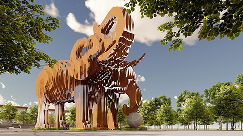 Từ ý tưởng hình ảnh đàn voi, dấu ấn đặc trưng của văn hoá núi rừng với chú voi đầu đàn hùng dũng đang bước chân về vùng đất mới, trù phú, ấm no và hạnh phúc bên con nước đầu nguồn chảy từ ngọn núi cao, mang ý nghĩa ban tặng tinh hoa núi rừng cho những người dân nơi đây đã dần được hiện thực hóa thành hình qua những giai đoạn thi công đầu tiên.