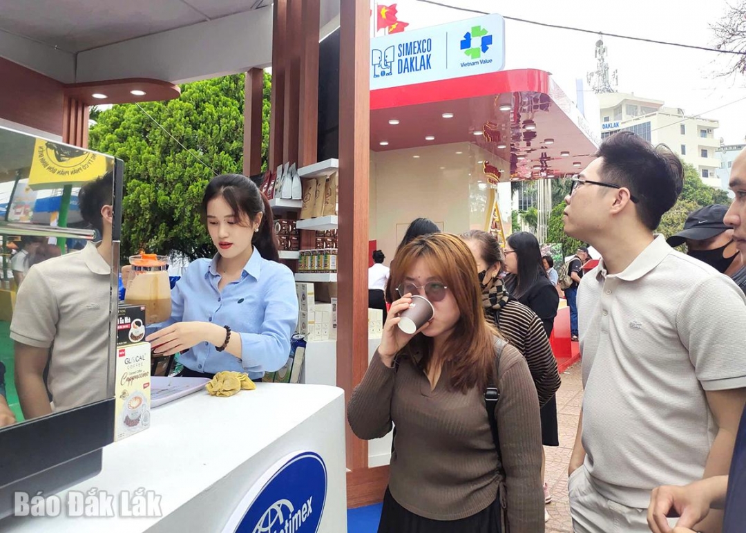 Người dân tham quan, tìm hiểu Hội chợ triển lãm chuyên ngành cà phê và sản phẩm OCOP tại Lễ hội Cà phê Buôn Ma Thuột lần thứ 9 năm 2025