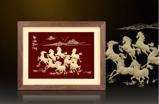 Tranh mã đáo thành công mạ vàng được chế tác thủ công với kỹ thuật chạm nổi 3D tinh xảo. Khác với tranh in phẳng thông thường, từng chi tiết trong tranh được tạo khối rõ nét, mang lại cảm giác chuyển động sống động cho bầy ngựa đang phi nước đại.
