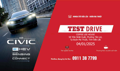 Ngày 04/01/2025, Honda Ôtô Đắk Lắk – Buôn Ma Thuột tổ chức chương trình “Lái thử các dòng xe Honda Ôtô” tại Coffee Lee House, 58 Trần Nhật Duật, thành phố Buôn Ma Thuột, tỉnh Đắk Lắk