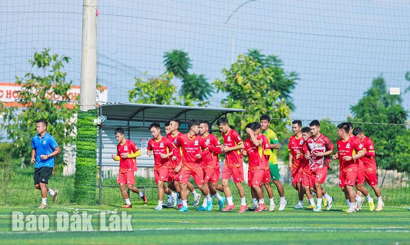 Các cầu thủ Câu lạc bộ Xổ số kiến thiết Đắk Lắk tập luyện, chuẩn bị cho giải đấu