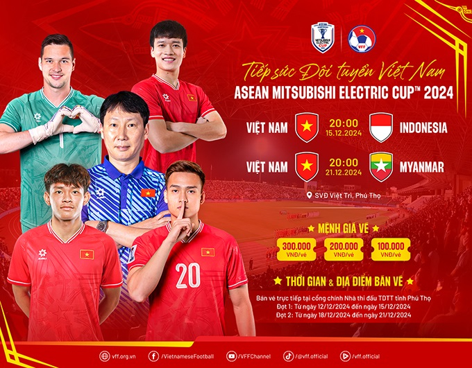 Thông báo ghi cụ thể, khán giá có thể mua đồng thời vé xem cả 2 trận đấu (Việt Nam – Indonesia, ngày 15/12/2024; Việt Nam – Myanmar, 21/12/2024).