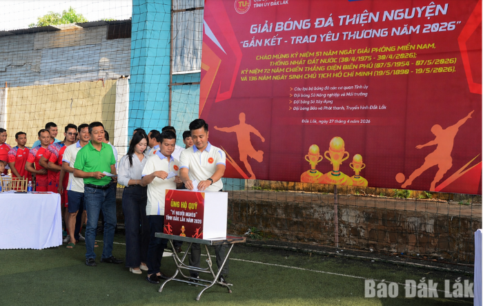 Ngày 27/4, tại sân bóng Tân Thái Long (phường Buôn Ma Thuột), Câu lạc bộ Bóng đá các cơ quan Tỉnh ủy Đắk Lắk tổ chức Giải bóng đá thiện nguyện “Gắn kết – trao yêu thương năm 2026”.