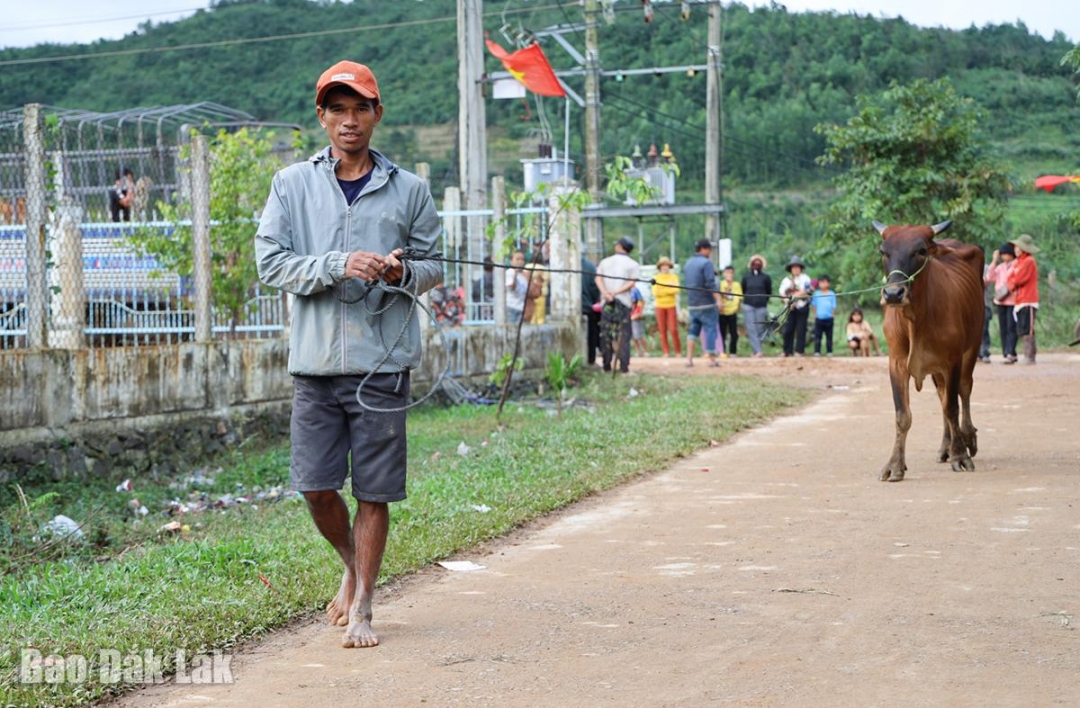 Người dân buôn Ea Drai A (xã Tân Tiến, huyện Krông Pắc) nhận bò từ Chương trình 1719