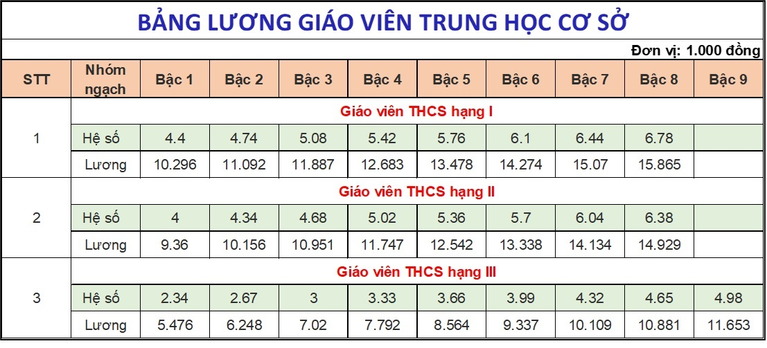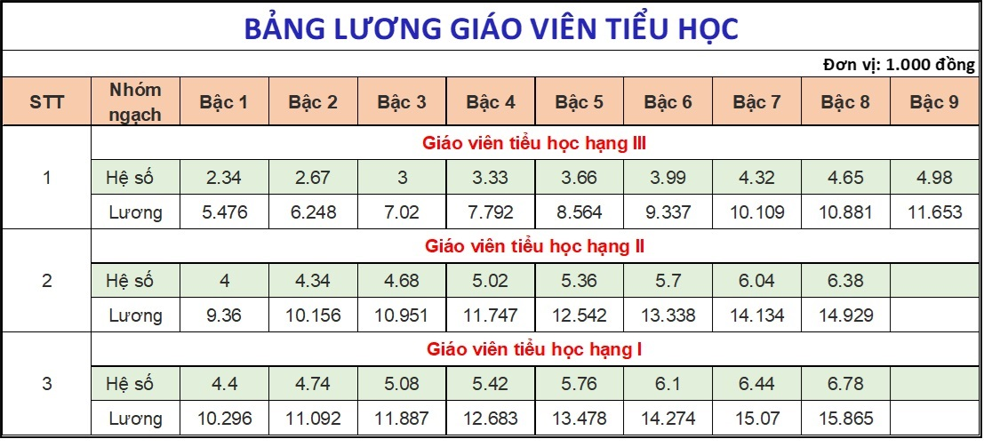 Bảng lương giáo viên 2025 khi không tăng lương cơ sở