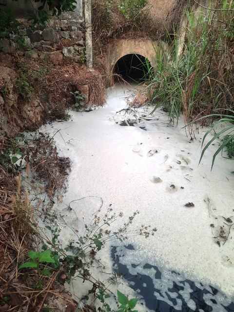 Nước thải từ việc vận hành, sản xuất của các cơ sở xả thẳng vào một nhánh suối trong khu vực. Ảnh người dân cung cấp